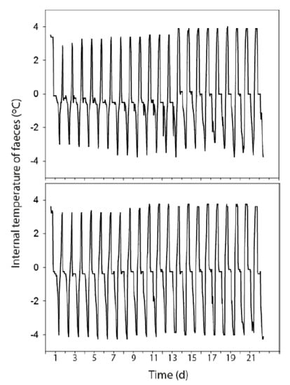 3.3. Temperature Fluctuations Within the Faeces