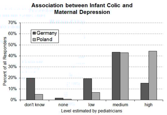 The present study found that the majority of pediatricians is aware of the association of infantile colic and maternal depression. However, with every fifth responder in Germany having stated not to know about this association, future educational programs might consider to elaborate about this association. Over three quarters of responders in both countries stated that the association between infantile colic is high or very high, which is in line with the strong association found by Vik et al. [6].