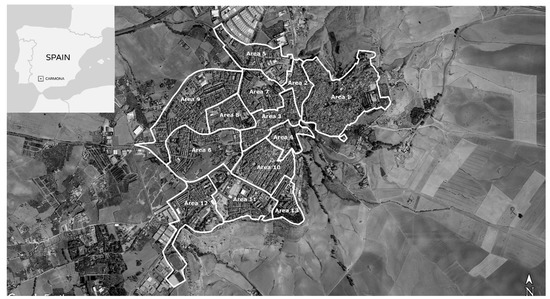 - Andalusian Multi-Territorial Information System, SIMA—Carmona (Seville). Available online: http://www.juntadeandalucia.es/institutodeestadisticaycartografia/sima/ficha.htm?mun=41024 (accessed on 24 February 2020).
