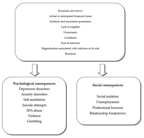 Figure 1 shows the factors that are a source of stress during the SARS-CoV-2 (severe acute respiratory syndrome coronavirus 2) epidemic and their possible psychological and social consequences [7].
