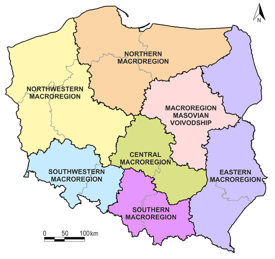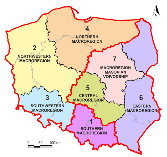 In addition to two super macroregions, cluster analysis also identified the third area, i.e., the southern macroregion (8.8% of Poland’s area). It consists of two regions (voivodships): Lesser Poland and Silesia. These are voivodships (two out of five) with the highest GDP in Poland in the long term.