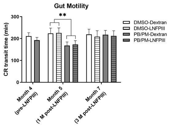 2.12. Statistical Analysis for Gut Motility, Lcn-2, and Plasma Cytokines