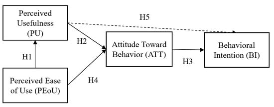 - Davis, F.D. Perceived usefulness, perceived ease of use and user acceptance of information technology. MIS Q. 1989, 13, 319–339. [Google Scholar] [CrossRef]