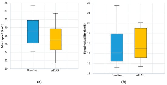 (a) Mean speed boxplots; (b) Speed variability boxplots.