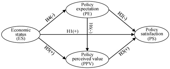 PV is a subjective, dynamic construct that varies across clients [53]. The family ES of Chinese farmers is closely related to education levels and ideological attitudes. Farmers with poorer family economic conditions (because of their poor understanding of the policy and the influence of news reports of urban construction projects that produce overnight riches from demolition) may have unrealistically high expectations of the homestead withdrawal policy. However, for families with better ES, there is usually a more rational expectation with regard to the homestead withdrawal policy. Therefore, we assumed that farmers’ ES will affect their perception of PV.