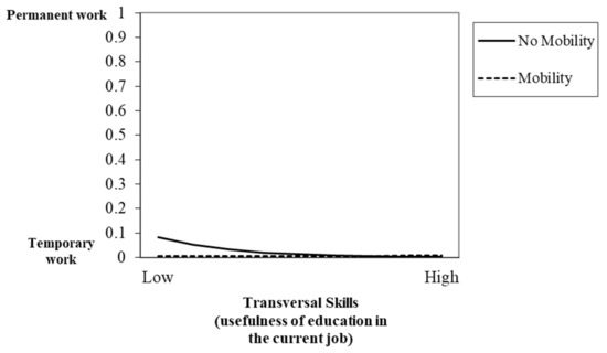 Interaction between transversal skills (usefulness of education in the current job) and mobility in predicting type of contract.