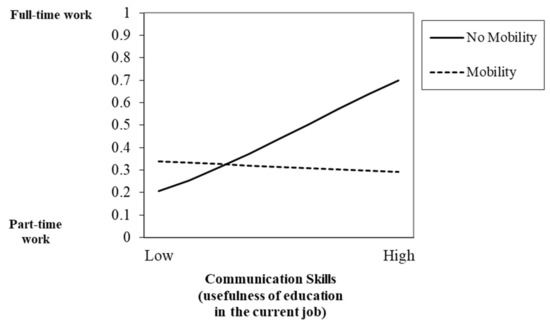 Interaction between communication skills (usefulness of education in the current job) and mobility in predicting full- and part-time work.