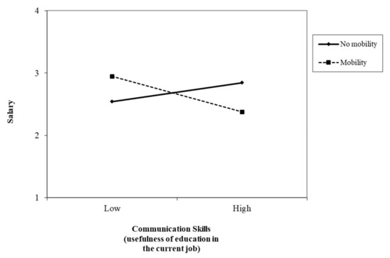 Interaction between communication skills (usefulness of education in the current job) and mobility in predicting salary.