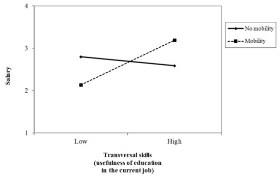Interaction between transversal skills (usefulness of education in the current job) and mobility in predicting salary.