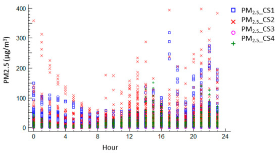 For a general characterization of the city’s atmosphere, we can select, as the main indicators, the PM and NO2 values as key parameters of the Air Quality Index (AQI) National System [57], which provides continuous information to the citizens on environmental quality.