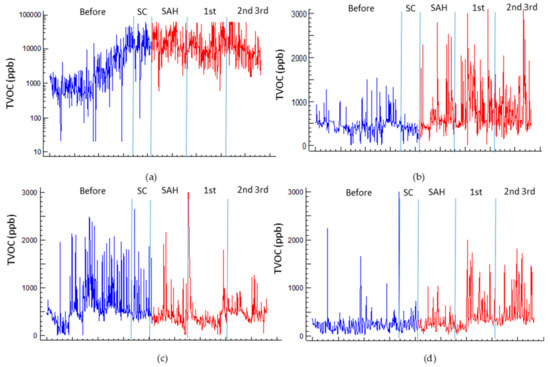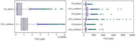 - Mečiarová, Ľ.; Vilčeková, S.; Krídlová Burdová, E.; Kiselák, J. Factors Effecting the Total Volatile Organic Compound (TVOC) Concentrations in Slovak Households. Int. J. Environ. Res. Public Health 2017, 14, 1443. [Google Scholar] [CrossRef] [PubMed]