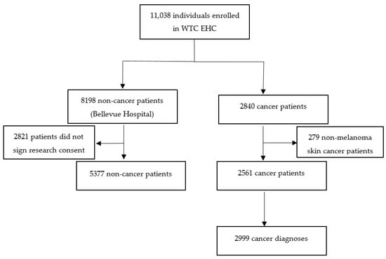 Durmus, N.; Shao, Y.; Arslan, A.A.; Zhang, Y.; Pehlivan, S.; Fernandez-Beros, M.-E.; Umana, L.; Corona, R.; Smyth-Giambanco, S.; Abbott, S.A.; et al. Characteristics of Cancer Patients in the World Trade Center Environmental Health Center. Int. J. Environ. Res. Public Health 2020, 17, 7190. https://doi.org/10.3390/ijerph17197190