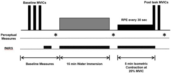 Several limitations should be addressed. First, although the PFC is not directly connected with major motor control regions, it is indirectly linked via the premotor area and thus may assist in exercise regulation [11]. Secondly, fNIRS provides us with an indirect measure of PFC activation and the validity of fNIRS has been compared with MRI measurements, showing close agreement between measurements [43]. However, the overall penetration depth of fNIRS is only ~2.5 cm, which is sufficient to penetrate the grey matter of cerebral tissue in adults, but these hemodynamic changes may not be representative of deeper cerebral tissue [44]. Another limitation that should be considered is that pre-testing caffeine consumption intake was not reported by participants, which may influence fatigability. Lastly, although there was no changes in core temperature post-water immersion, we cannot rule out if skin or scalp blood flow (and therefore oxyhemoglobin) were altered, which can influence cortical measurements [45].