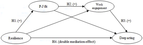 Person–job fit and work engagement will double mediate the relationship between service employees’ resilience and deep acting.