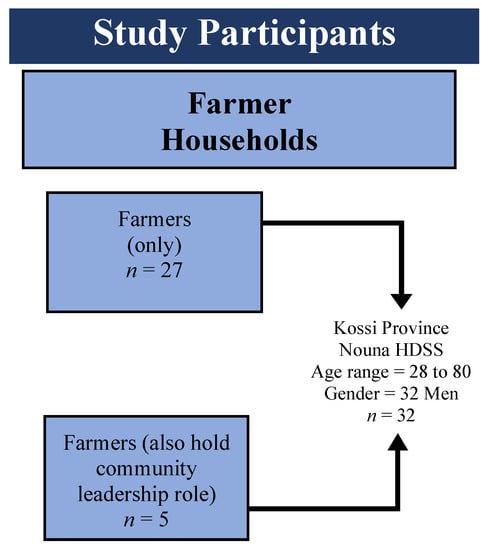 Sorgho, R.; Mank, I.; Kagoné, M.; Souares, A.; Danquah, I.; Sauerborn, R. “We Will Always Ask Ourselves the Question of How to Feed the Family”: Subsistence Farmers’ Perceptions on Adaptation to Climate Change in Burkina Faso. Int. J. Environ. Res. Public Health 2020, 17, 7200. https://doi.org/10.3390/ijerph17197200