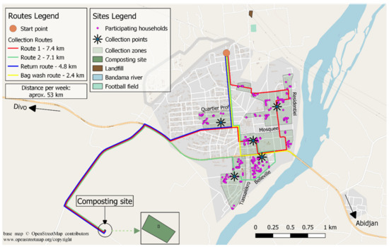 - Drechsel, P.; Cofie, O.; Fink, M.; Danso, G.; Zakari, F.; Vasquez, R. Closing the Rural-Urban Nutrient Cycle. Options for Municipal Waste Composting in Ghana. Final Scientific Report Submitted to IDRC (project 100376); IWMI: Ghana, Africa, 2004. [Google Scholar]