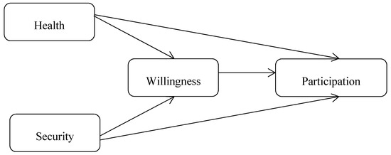 In many studies, it has been found that willingness can play a mediating role in the participation behavior of older people. Based on the fourth survey data from the Living Conditions of the Chinese Urban and Rural Elders in 2015, Yu [32] found that good economic and health conditions promote the willingness of older people to participate in voluntary services, but they did not further test whether this “willingness” affected the final participation behavior of older people. A study in Taiwan found that somatosensory game interventions significantly increased the degree of social interaction and the maintenance of the willingness to exercise of old people living in nursing homes over time, and further significantly improved their happiness indicators [33]. Evidence from older Japanese people in residential facilities showed that their mental condition was positively related to the willingness to accept conversation and companionship from volunteers [34].