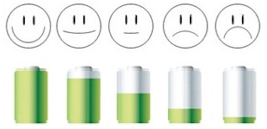 Fatigue. Fatigue was measured by a single-item, five-point visual analogue scale from a full battery to an empty battery, where higher values mean more intense fatigue (see Figure 1).