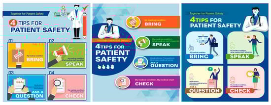 Our researchers considered the following points while developing the patient safety educational materials: (1) emphasis on “The patient is at the center of patient safety” (“Do not talk about me without me”), (2) assurance of patient safety through patients, and (3) usage of simple and clear terms (bring, speak, question, and check).