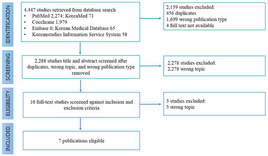 - Search engines: PubMed, Embase, Cochrane Database, KoreaMed, Korean Studies Information Service System, Korean Medical Database.
