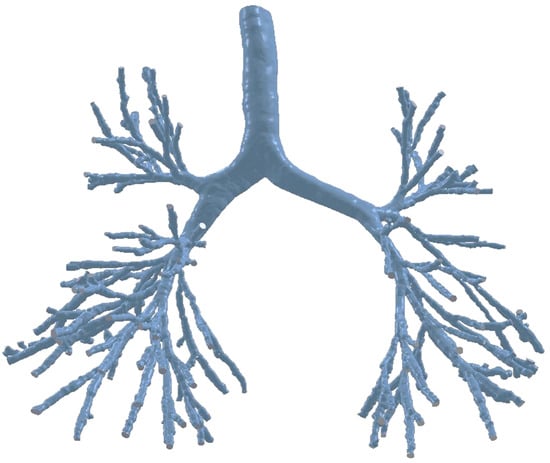- Spencer, R.M.; Schroeter, J.D.; Martonen, T.B. Computer simulations of lung airway structures using data-driven surface modeling techniques. Comput. Biol. Med. 2001, 31, 499–511. [Google Scholar] [CrossRef]