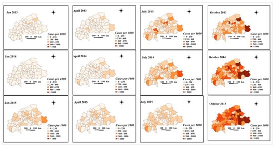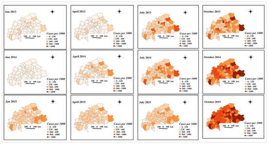 3.3.2. Spatial, Temporal, and Spatio-Temporal Variation in Malaria Incidence