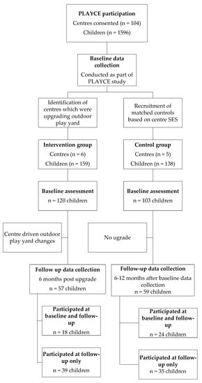 - Christian, H.; Maitland, C.; Enkel, S.; Trapp, G.; Trost, S.; Schipperijn, J.; Boruff, B.; Lester, L.; Rosenberg, M.; Zubrick, S. Influence of the day care, home and neighbourhood environment on young children’s physical activity and health: protocol for the PLAYCE observational study. BMJ 2016, 6, e014058. [Google Scholar] [CrossRef]