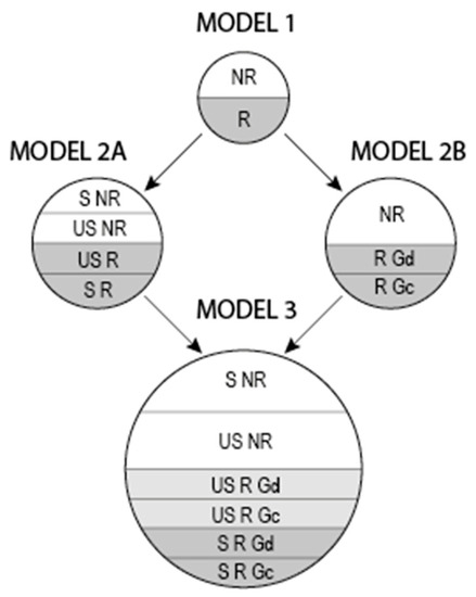 Categorisation of respondents according to religious affiliation combined with perceived closeness to God and stability of religious attitudes. NR: non-religious; R: religious; S: stable; US: unstable; Gd: perceiving God as distant; Gc: perceiving God as close.