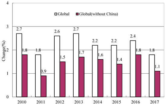 Rapid economic growth in emerging economies has led to rising wages and incomes. Under the recent increasing challenges faced by the global economy owing to the global economic and trade disputes, the wages in emerging economies maintain a rapid growth rate, while wage growth decreases in many developed countries. In particular, the wage in China presents a growth against the trend. The International Labor Organization (ILO) reports that the annual growth rate of the average wage in China has reached 8% from 2008 to 2017. The actual wage growth in 136 economic entities worldwide was 1.8% in 2017, with 0.7% from China (Figure 2).