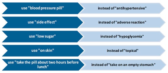 - Veenker, H.; Paans, W. A dynamic approach to communication in health literacy education. BMC Med. Educ. 2016, 16, 280. [Google Scholar] [CrossRef]