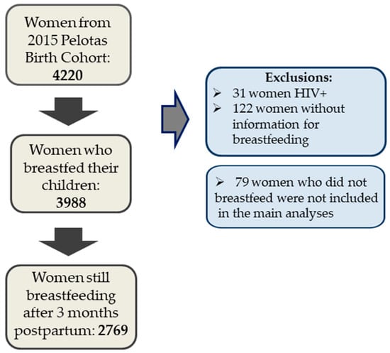 Women with HIV (human immunodeficiency virus) diagnosis were excluded from the analysis since this is an absolute contraindication to breastfeeding in Brazil [22].