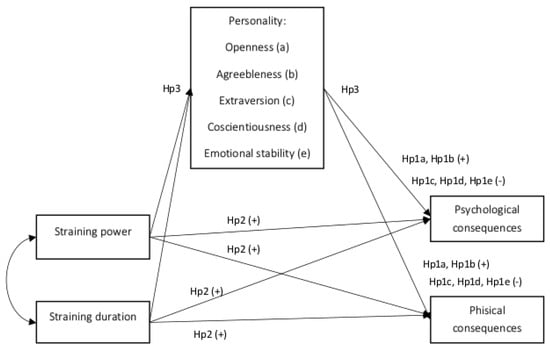 The correlation analysis (see Table 4) clearly showed that only a few personality factors are related to psychological and physical consequences. Moreover, the regression analysis highlighted that emotional stability is the only Big Five subscale that clearly predicts both individual consequences (F (1, 374) = 42.90; p < 0.001; R2 = 0.103; ß = −0.268). This seems to stress that only specific personality factors have an impact on individual consequences. However, the assumed direction of the relationship between personality and consequences was confirmed for emotional stability (negative, Hp1e), conscientiousness (negative, Hp1d), and extraversion (negative, Hp1c). Overall, even if many of the sub-hypothesis were partially confirmed, the results corroborated the macro hypotheses Hp1 only for emotional stability; because of these results and because of the parallel lack of relationship with straining measures, only emotional stability was considered as a personality factor in the subsequent analysis.