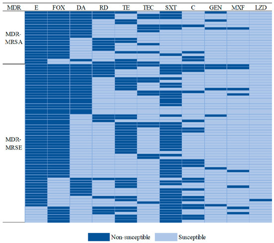 - Zhang, K.; McClure, J.A.; Elsayed, S.; Louie, T.; Conly, J.M. Novel multiplex PCR assay for characterization and concomitant subtyping of staphylococcal cassette chromosome mec types I to V in methicillin-resistant Staphylococcus aureus. J. Clin. Microbiol. 2005, 43, 5026–5033. [Google Scholar] [CrossRef] [PubMed]
