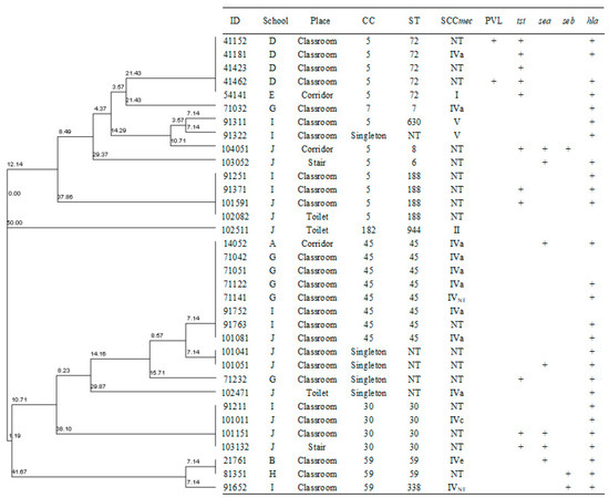 - Iwao, Y.; Yabe, S.; Takano, T.; Higuchi, W.; Yamamoto, T. Isolation and molecular characterization of methicillin-resistant Staphylococcus aureus from public transport. Microbiol. Immunol. 2012, 56, 76–82. [Google Scholar] [CrossRef] [PubMed]