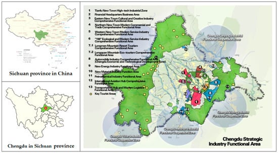 As a national regional central city, Chengdu is the center of the economy, technological innovation and financial trade in Southwest China. At the same time, in recent years, Chengdu put forward a development goal: To build inland open economic highlands and a Park City (PC) with ecological value. PC is the sublimation of the traditional urban planning concept under the new era, and it is a new mode of sustainable development of urban construction. At this point, Chengdu has become the first city to mention the concept of PC. The location of the study area is shown in Figure 3.