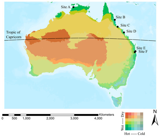 - Australian Government, Bureau of Meteorology, Climate Classification Maps. Available online: http://www.bom.gov.au/jsp/ncc/climate_averages/climate-classifications/index.jsp?maptype=kpngrp#maps (accessed on 24 November 2019).