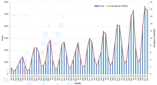 Despite the findings above, several limitations of our study should be acknowledged. First, our data were obtained from the official disease-monitoring system, and we cannot rule out the possibility of under- or over-reporting for various reasons [55,56,57], such as failure to seek treatment among patients with mild symptoms, and inadequate diagnosis among clinically diagnosed cases. However, the proportion of these people is likely to be small and stable [58,59,60], and thus will not affect the epidemic characteristics and transmission trends of the disease. Second, we obtained only five-year reporting data during a relatively short period, which was not sufficient to develop understanding of the long-term epidemic characteristics and periodical trend changes. Therefore, with the development of disease surveillance, more data should be collected and analyzed in the future. Finally, in view of insufficient information on geographic, climatic, socio-economic, and other possible risk factors, we have not conducted a more in-depth study to assess their relationships and relevance, so it is difficult to determine the reasons for the clusters.