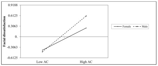 The interaction between appearance comparisons and gender on facial dissatisfaction. AC = appearance comparisons.
