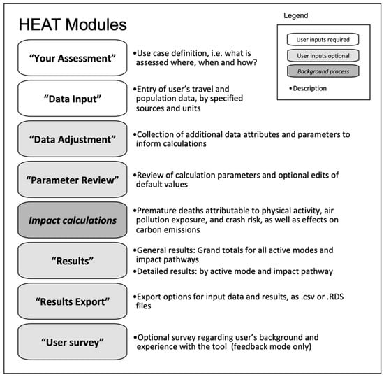- HEAT still only assesses mortality. This is not for lack of evidence about the effects of active travel on morbidities, i.e., cardio-vascular diseases and others, but for the reason of keeping the tool simple. Users interested in assessing impacts on morbidities may consider more complex tools, such as the Integrated Transport and Health Impact Model (ITHIM) [37], or conduct their own custom analysis;
