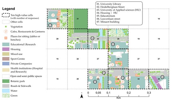 3.3. The Interface between Mapped Perceptions and Built-Environment Features