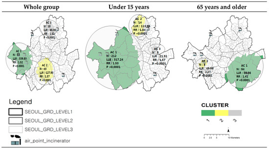 Clustered Areas of Asthma-related Admission by Age, Seoul (2009–2011).
