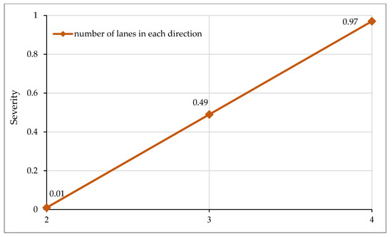 Effect of number of lanes in each direction on crash severity.