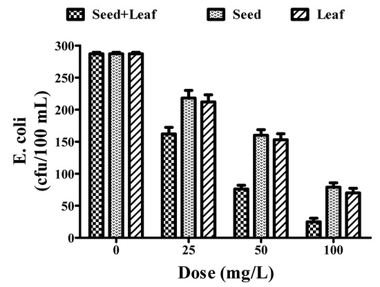 3.6. Effect of the Moringa oleifera Plant Extract on Biological Contaminant (E. coli)