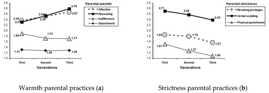 - Martin, P.; Halverson, C.F.; Wampler, K.S.; Hollett-Wright, N. Intergenerational Differences in Parenting Styles and Goals. Int. J. Behav. Dev. 1991, 14, 195–207. [Google Scholar] [CrossRef]