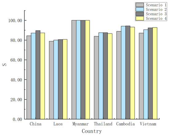 As Table 5 shows, in the four different scenarios, the NS that was mentioned by each BC cannot meet the constraint conditions that equal 100%, and because the trans-boundary water resources are shared by all basin countries, each BC cannot maximize their own benefits, and they have to make certain concessions for further cooperation.
