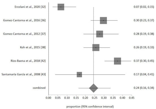 A random effects meta-analysis about the prevalence of EE, D, and low PA were done with the StatsDirect® software (StatsDirect Ltd., Cambridge, UK) [29]. The Egger test was used for the evaluation of publication bias and the I2 index for as heterogeneity test. Moreover, a sensitivity analysis was done before the analysis.