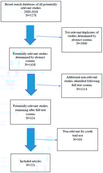 APA StyleReed, J. A., Ballard, R. M., Hill, M., & Berrigan, D. (2020). Identification of Effective Programs to Improve Access to and Use of Trails among Youth from Under-Resourced Communities: A Review. International Journal of Environmental Research and Public Health, 17(21), 7707. https://doi.org/10.3390/ijerph17217707