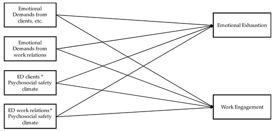 - Geisler, M.; Berthelsen, H.; Hakanen, J.J. No job demand is an island: Interaction effects between emotional demands and other types of job demands. Front. Psychol. 2019, 10, 873. [Google Scholar] [CrossRef]
