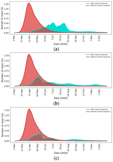 - Prem, K.; Liu, Y.; Russell, T.W.; Kucharski, A.J.; Eggo, R.M.; Davies, N.; Flasche, S.; Clifford, S.; Pearson, C.A.; Munday, J.D.; et al. The effect of control strategies to reduce social mixing on outcomes of the COVID-19 epidemic in Wuhan, China: A modeling study. Lancet Public Health 2020, 5, e261–e270. [Google Scholar] [CrossRef]