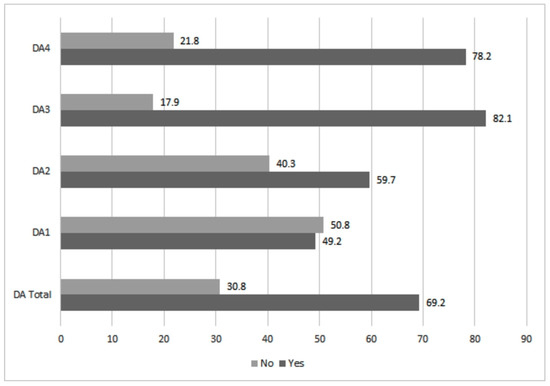 General index of DA and its subscales, in %.
